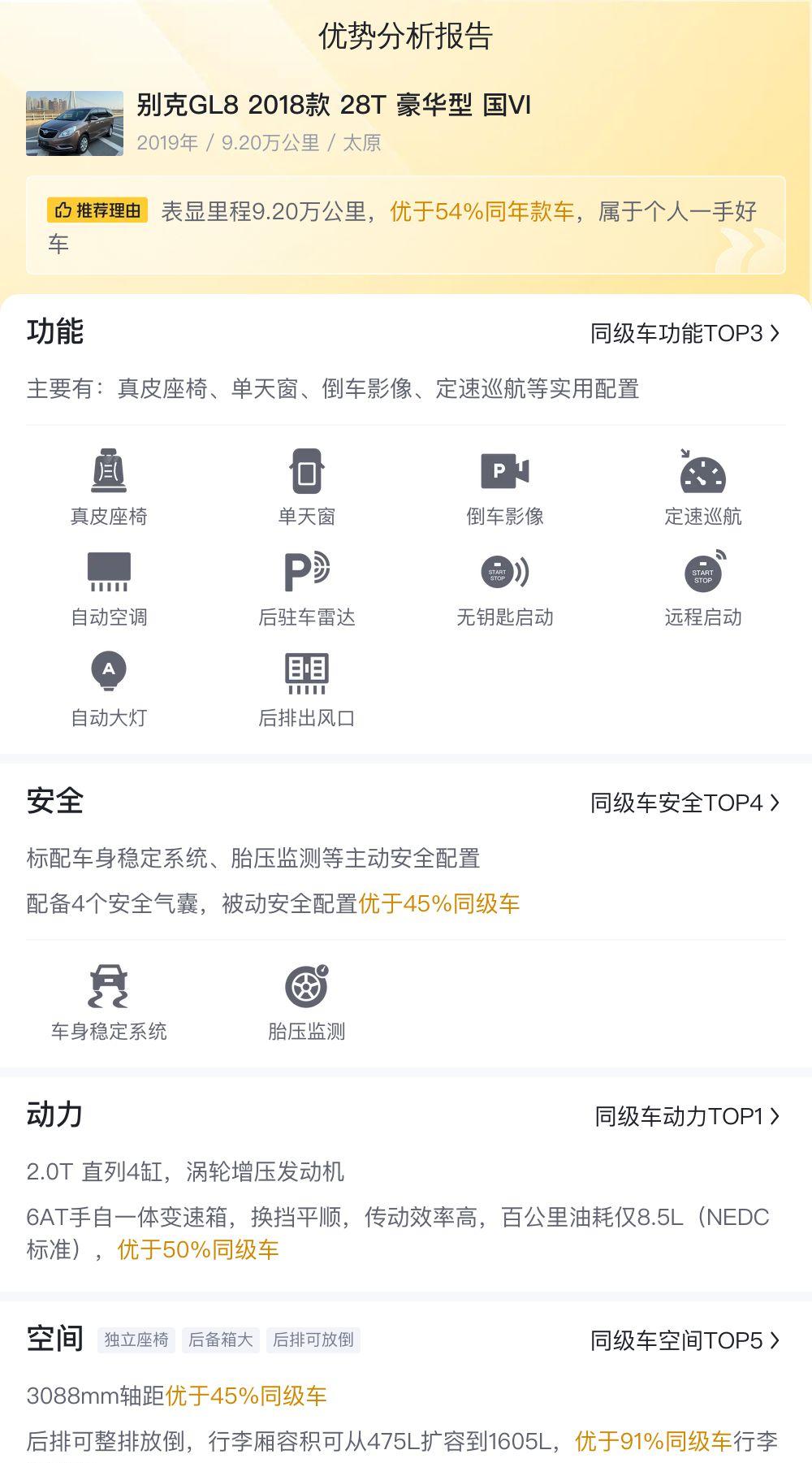 总的来说,这辆二手别克GL8 28T豪华型,以其宽敞的空间、舒适的配置和相对实惠的价格,成为了一个值得考虑的家用MPV选择。当然,最终是否值得购买,还需要根据您个人的需求和预算来决定。如果您更看重实用性和性价比,并且能够接受二手车的一些小瑕疵,那么这辆GL8或许是一个不错的选择。如果您追求完美,或者对车况有更高的要求,那么建议您还是选择购买新车。