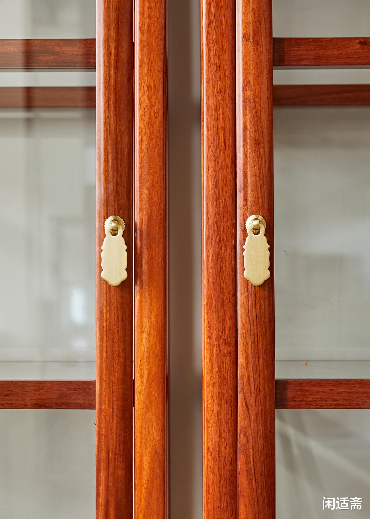 此对展示柜通体甄选优质缅甸花梨木打造,奠定坚实品质根基。木材色泽醇厚雅致,呈黄褐色至红褐色渐变,肌理间分布着清晰的水波纹、虎皮纹等天然纹路,独一无二且极具观赏性;自带淡淡的檀木清香,悠远醇厚,兼具安神静心之效,为空间注入自然雅致的韵味。