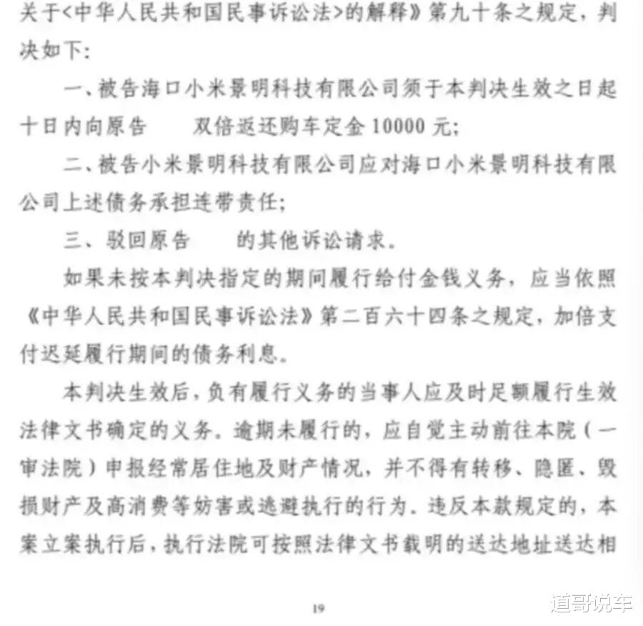 转机出现在海口市美兰区人民法院的判决中。这份判决如同一束光,照进了小米汽车精心构建的法律暗角。