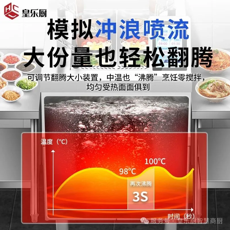 餐饮业高峰期集中,传统煮粉方式常常导致顾客排长队。皇乐厨自动升降煮面炉的双缸双温设计,使厨师能同时处理多份订单,大大缩短了出餐时间。