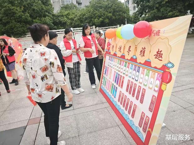 活动环节紧扣“凝心”“共耀”主题,设置月下套圈、趣味灯谜、灯笼制作、知识问答、打卡拍照六大特色区域,整个活动现场处处洋溢着“家国同庆”的热烈氛围,让传统元素与节日气息铺面而来。猜谜寻雅趣区域内挂满写有中秋习俗、爱国知识的灯谜卡片,参与者结伴讨论,或低头思索,从诗词谜到节日谜,大家在解谜过程中重温文化历史,感受传统民俗文化的独特魅力。