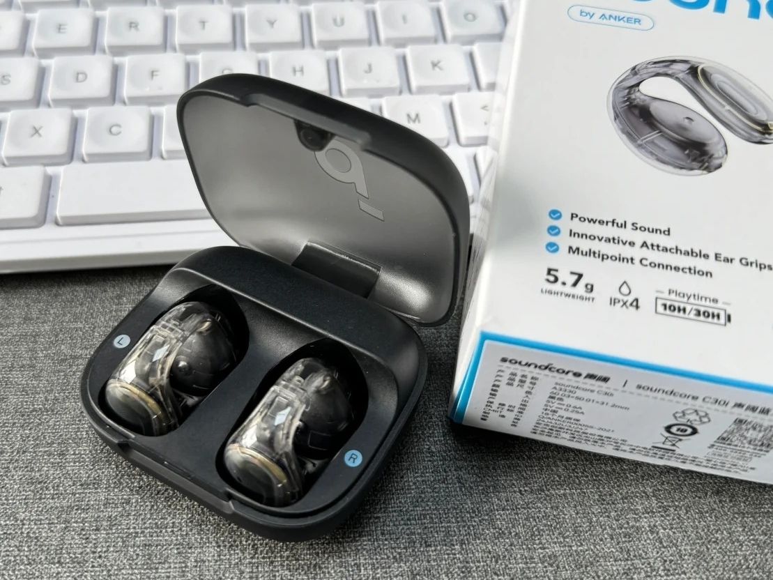 声阔 C30i 用蓝牙 5.3 芯片,配对速度快,抗干扰能力也强,日常使用很少出现断连情况;防护方面,IPX4 级防水能抵御汗水和雨水,这点还是蛮省心的,续航上,耳机单次能听 10 小时,搭配充电盒综合续航达 30 小时,可以轻松满足日常使用需求。