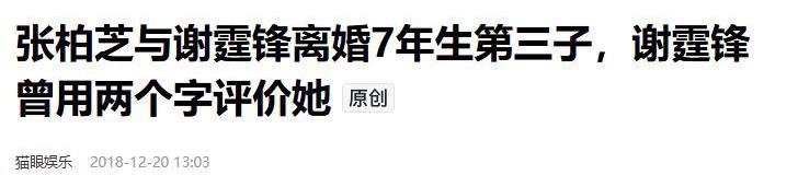 猫眼娱乐2018-12-20:张柏芝与谢霆锋离婚7年,迎来了第三个孩子,谢霆锋曾用简短的两个字来形容她。