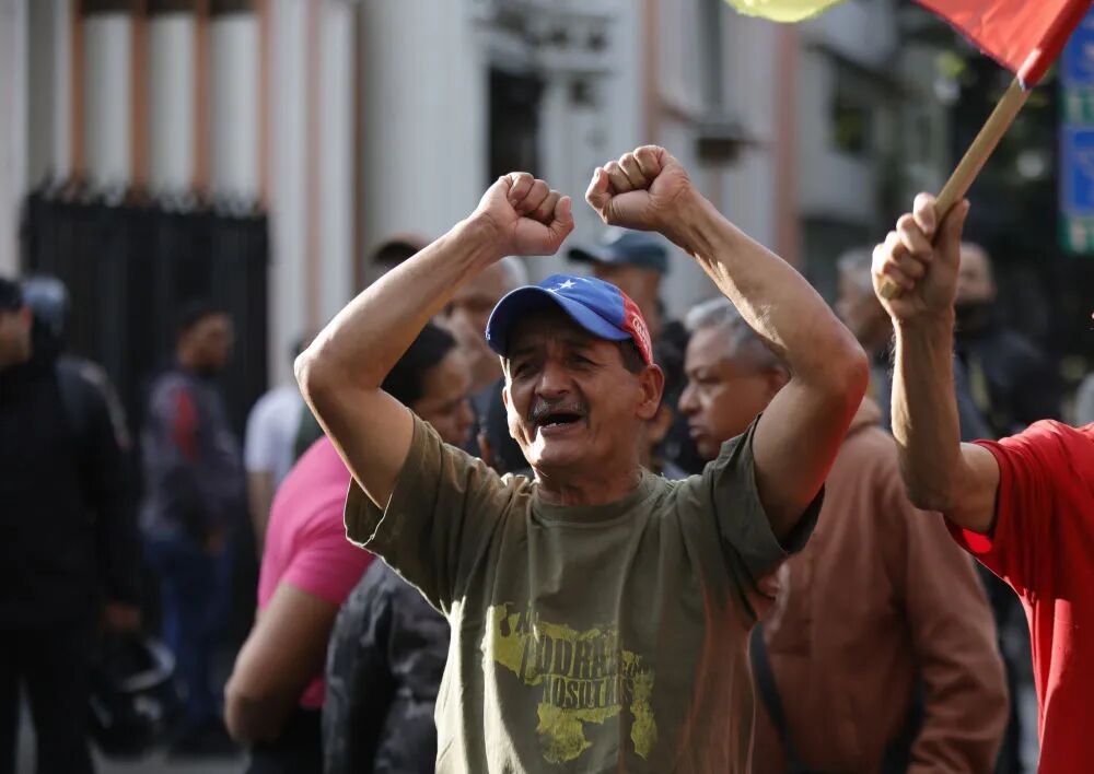 1月3日,民众在委内瑞拉首都加拉加斯的总统府附近抗议。新华社发