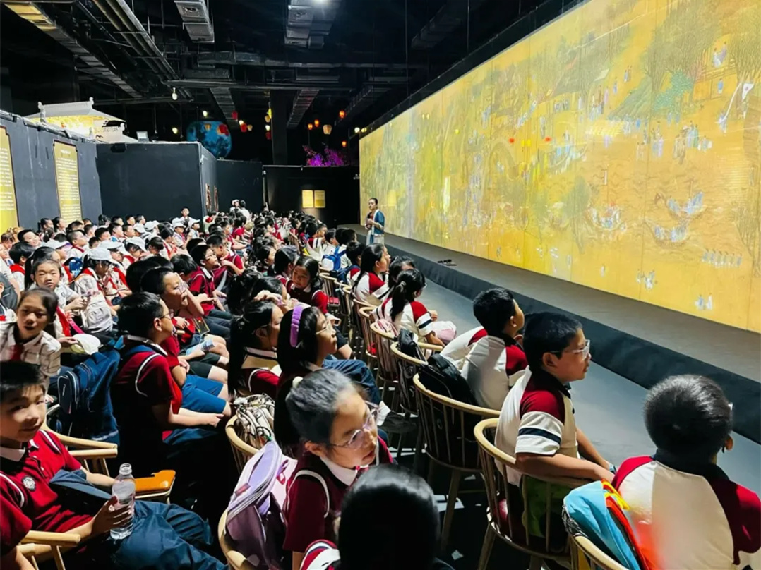 五年级全体师生走进祖龙科技艺术中心,开启 “AI奇遇记——遇见清明上河图” 主题实践活动。明代版《清明上河图》AI动态长卷,让沉睡古画化作 “会讲故事的历史书”,同学们直观感受历史与科技的融合之美;“我在大明做买卖” 财商实训游戏中,他们在仿古街景体验交易全流程,建立财商思维,提升沟通协作能力;“我是拓印小能手” 实践课上,亲手制作拓印,感受AI与非遗技艺的碰撞,完成一场“知行合一”的成长历练。