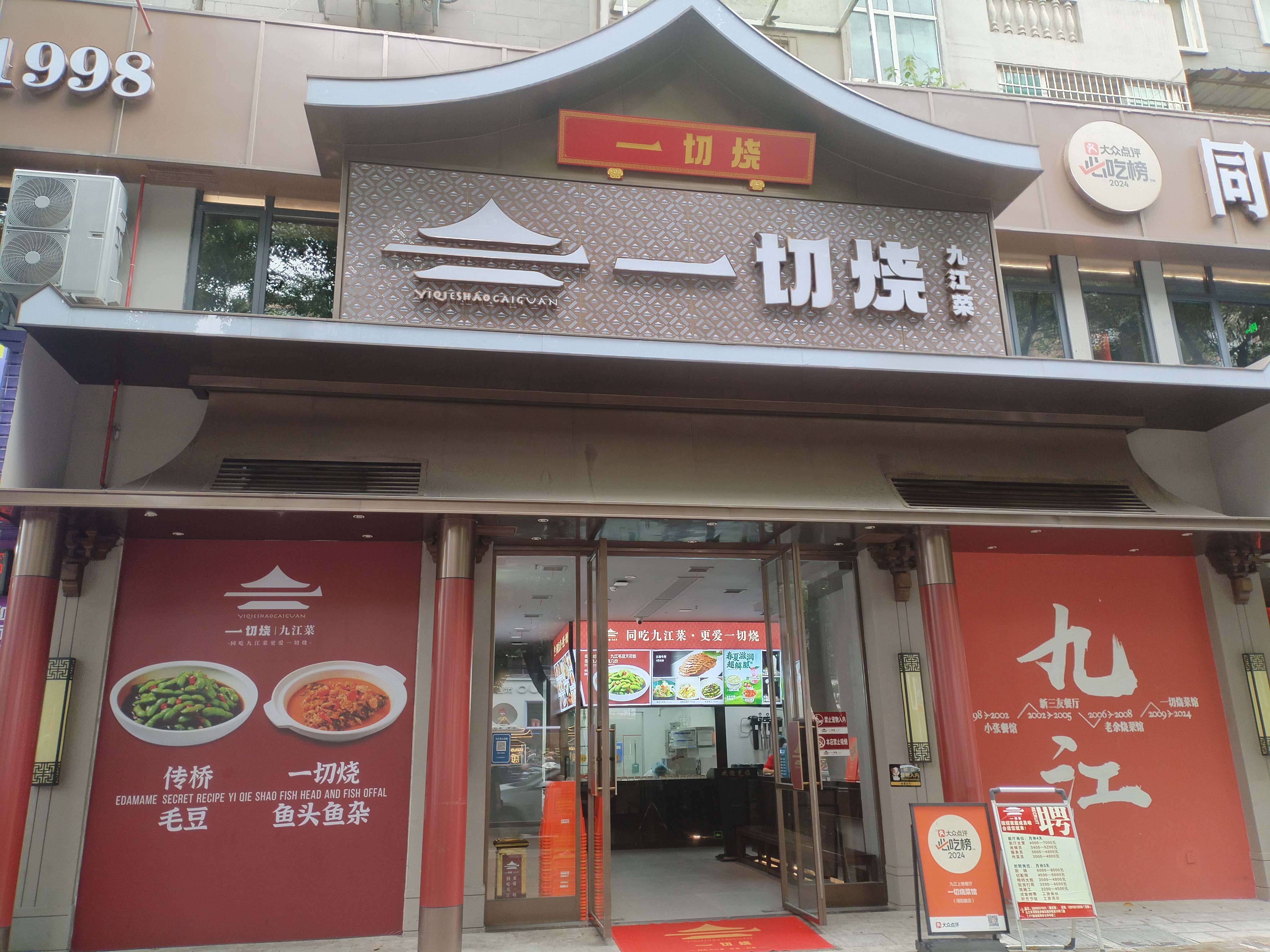 炉火正旺,砂锅里咕嘟作响。红红的汤浪翻滚间,一只硕大雄鱼头半隐半现,金黄鱼籽块堆挤在锅边,乳白的鱼泡、鲜红的椒段在红汤面上载沉载浮。鲜香混着辣意撞入鼻腔,这锅沸腾的鱼头烧鱼杂,正是九江一切烧九江菜的镇店之魂。一切烧九江菜正是凭借这道“一切烧鱼头鱼杂”主打菜开店,烧出了3家店。