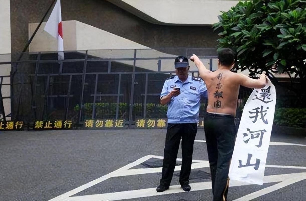 如今,刘强干得更"野":成立琉球历史研究会,推动琉球独立;天天在日本领事馆门口唱抗日歌曲,背后写着"精忠报国"。有人骂他疯子,可他指着靖国神社的照片说:"这火,烧得值!"