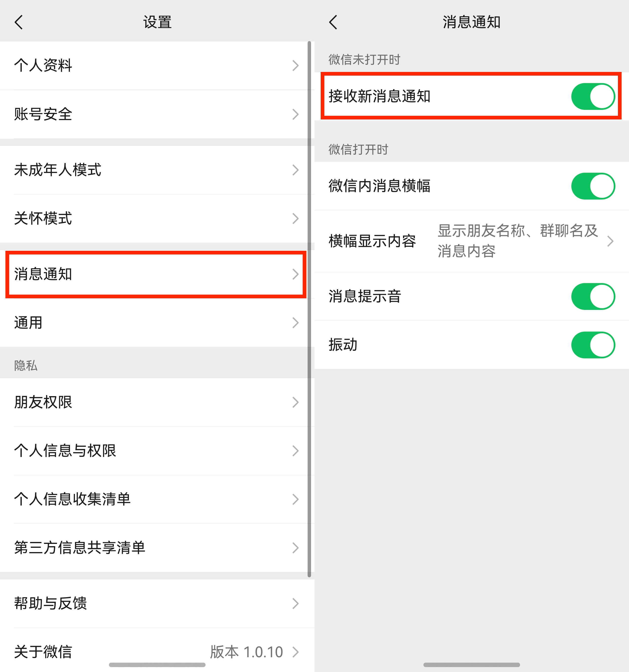 鸿蒙5的通知管理分系统和应用两层。应用方面设置比较简单,只要打开微信设置里的“接收新消息通知”就行。