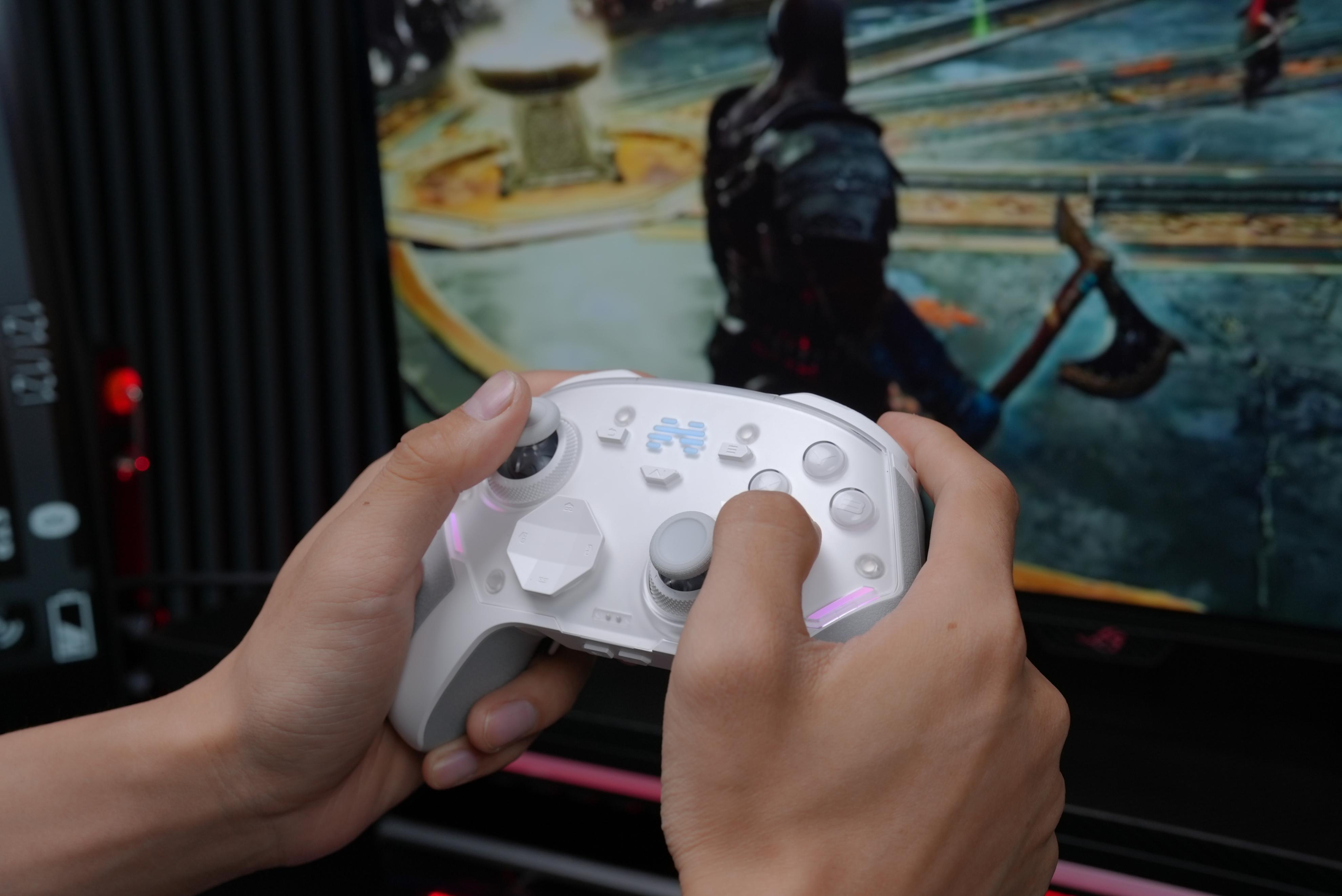 还有我比较喜欢的一个点,那就是行业创新的AI记忆面壳,自定义配置功能,换个面壳就能换种外观和手感,包括灯效、扳机模式、键位等,还支持专属UI和配置自定义,随着面壳自动切换。
