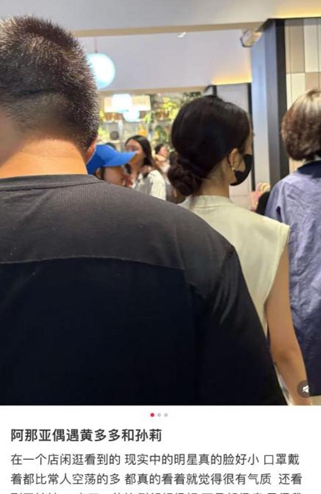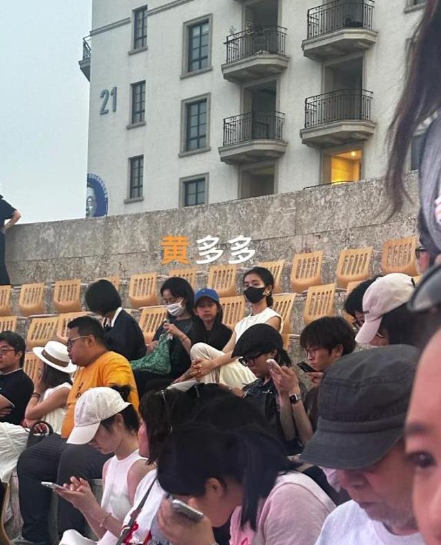 多多背影被拍,头扎丸子头的她站在人群十分惹眼,身姿绰约,手臂纤长,看起来超有气质。而在多多前面头戴蓝色棒球帽的人就是妹妹人黄少艾了。