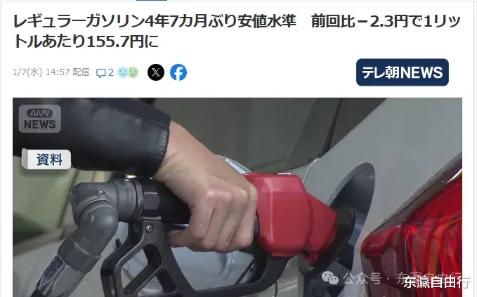 不过,这只是个别网友的感受。据日本经济产业省7日公布的数据显示,截至5日,全国普通汽油的平均零售价格为每升155.7日元,比2025年12月22日的上一次调查下降2.3日元,创下自2021年6月以来、约4年半的最低水平。