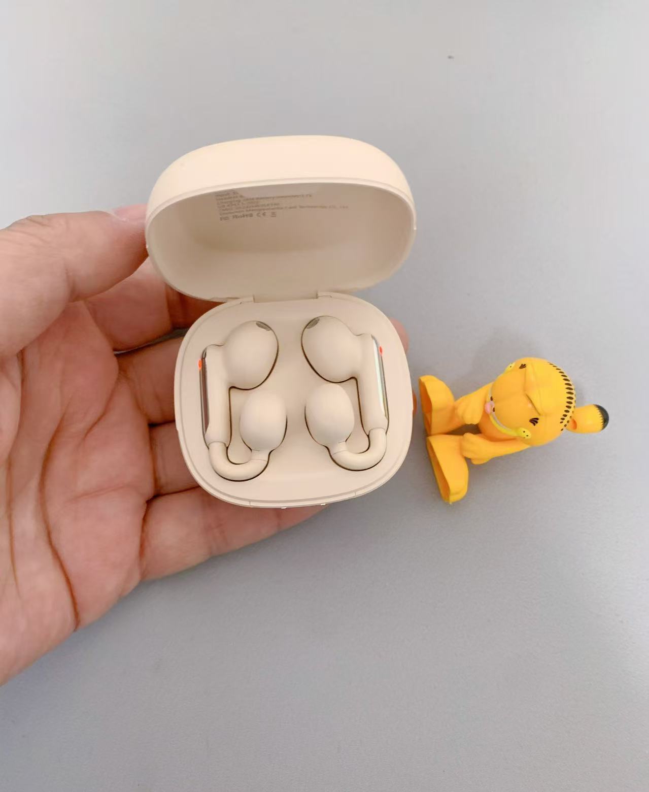 南卡Clip Pro的设计独具匠心,既不是传统的入耳式,也不是挂耳式,而是采用了全新的C-Hook 2.0佩戴方案。耳机主体采用BUF环扣设计,整体线条流畅,时尚感十足。发声单元为圆球造型,精致小巧,前端为椭圆形音孔,外罩亮银色金属网;供电单元为椭圆形,尺寸略大;横梁为控制单元,正面是触控面板,印有品牌LOGO并配有LED指示灯,侧边则是两个磁吸充电触点。整机重量仅约5.1克,采用亲肤硅胶材质,佩戴时几乎感觉不到它的存在。扁平的横梁结构贴合耳部曲线,内置高弹性钛合金丝线,经过抗疲劳与弯折测试,确保佩戴稳固且舒适,完全没有压迫感;这一设计特别适合那些不喜欢入耳式耳机的用户。