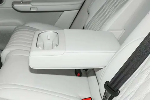 车身侧面的设计堪称“比例美学典范”,溜背式车顶线条从B柱缓缓下滑,搭配隐藏式电动门把手与20英寸多辐式轮毂,既降低了0.26Cd的超低风阻,又强化了运动质感。新增的星汉灰车漆在不同光线下呈现细腻金属光泽,配合全系标配的后排隐私玻璃,不仅提升了私密性,更添几分豪华格调。车窗周围的镀铬饰条与车身底部的黑色防刮护板形成巧妙呼应,让沉稳气质中多了份实用考量。