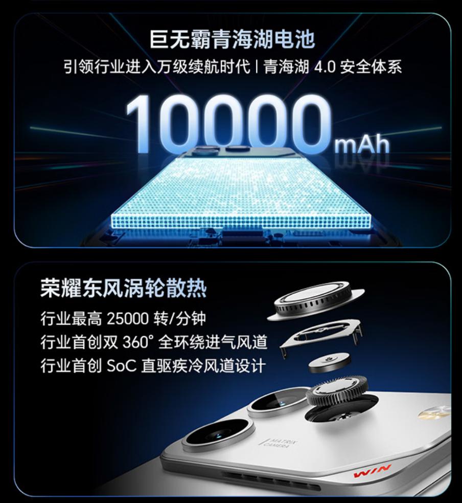 荣耀WIN RT【张予曦同款】:骁龙8至尊芯(听名字唬人,实际是8系优化版)+ 10000mAh青海湖电池——这容量在2026年属于"丧心病狂"级别,比某些充电宝还能扛!12+256GB起步,妥妥的"电竞偶像派"路线。