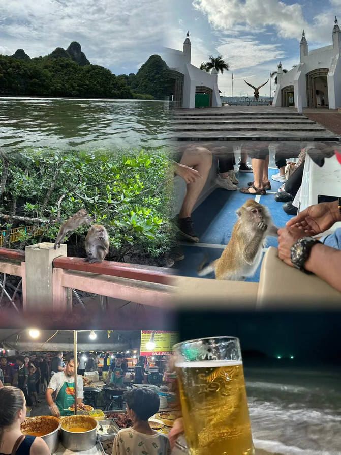 这次首站来到兰卡威,在珍南海滩边上喝上一杯,伴着海风,舒服又安逸。去地质公园看猴子,可以投喂食物;第一次看到一大群的雄鹰从身边掠过,很是壮观;欣赏世界自然遗产红树林,领略地质公园风光,也进了蝙蝠洞、鳄鱼洞,欣赏喂鱼表演等。