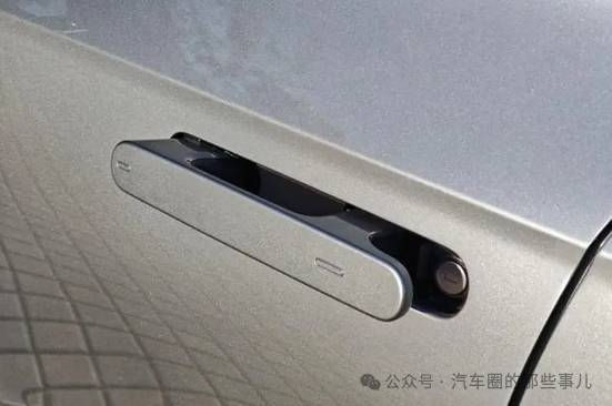 侧面来看,新车侧面造型较为动感,笔直的腰线贯穿车身,看上去十分硬朗。值得一提的是,新车采用的机械式隐藏门把手,具备电子 + 机械双重技术保障,支持智能感应(1.5 米内)、触摸把手、遥控钥匙三种智能解锁方式,相比新能源车型的隐藏式门把手,新车还延续了传统机械解锁功能,车辆断电、电子系统失效时,可通过机械钥匙解锁。并且该机械式隐藏门把手具有强劲的破冰能力,在冰冻的时候可释放 200N 的破冰力,可有效保证冰雪天气的正常使用。