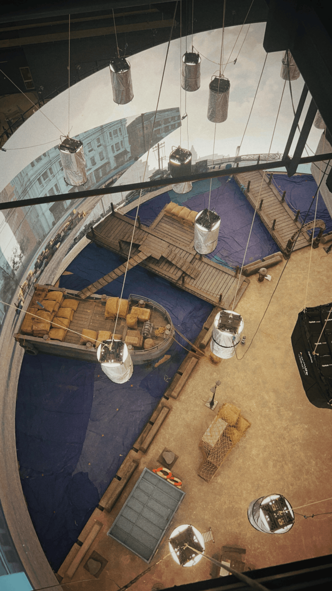 整个“上海滩”由直径28.5米的LED屏幕呈现,为了确保前后景别的空间、运动完全统一,虚拍团队将屏内画面的延迟精确控制在200毫秒以内,保证一艘船在屏幕内外,都实现演出效果的一致,让观众在沉浸于故事时,不会有“抠图”的不适感出现。