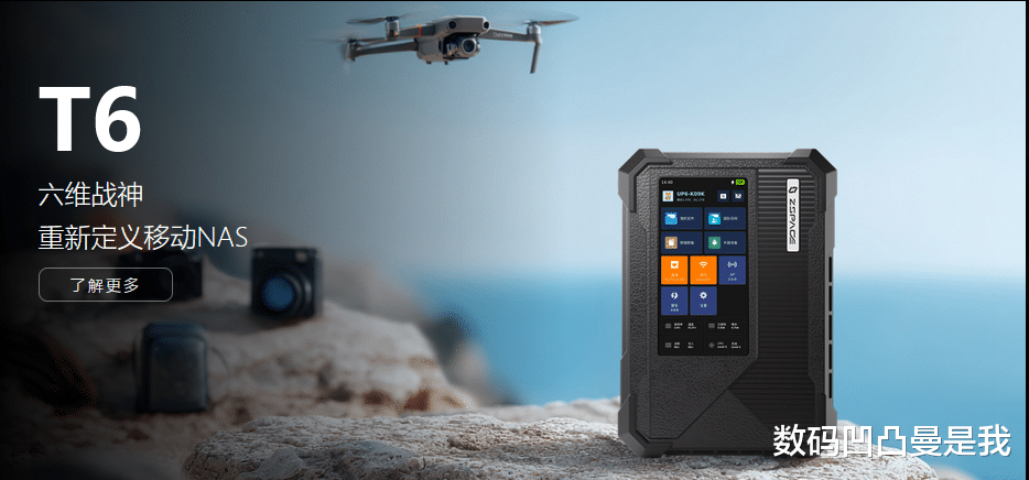 T系列主打移动场景,这款T6搭载的是Ultra 5 125H处理器,支持持续高负载,内置UPS设计,内置6个M.2盘位最大支持48TB,造型设计硬朗,看着就挺户外的。机身接口也超多,除了CFe-B等常规接口同样配备万兆网口+双雷电4口并支持显卡拓展提升AI算力,另外还带一块1080P触控屏,可操控或查看拍摄素材。总之相当炸裂,建议大家都去看看详情介绍。