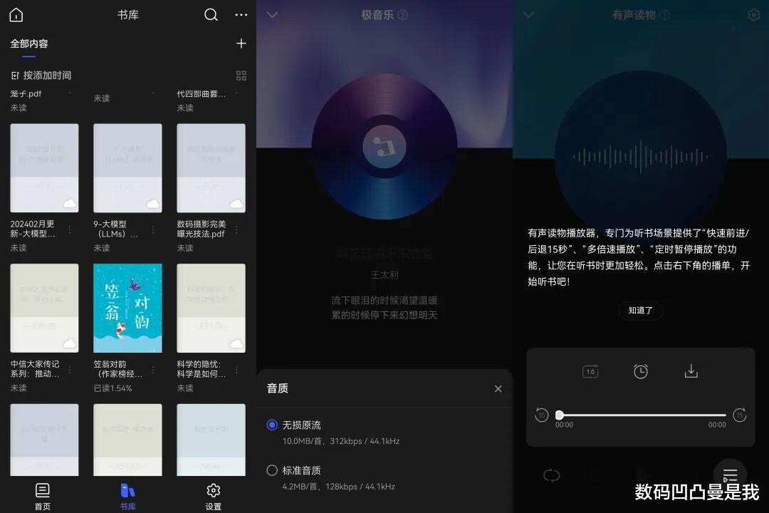此外“有声读物”播放器还可作为听书工具使用,支持快速前进/后退15秒、多倍速播放、定时播放,睡前听书助眠也相当实用。