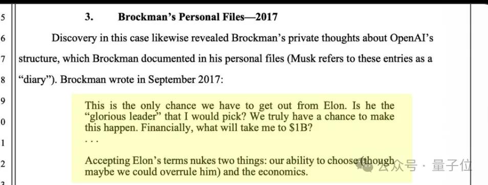 总裁私人日记,正经人谁写日记啊? 最具爆炸性的证据来自Greg Brockman 2017年9月至11月的私人日记,这些内容通过法律发现程序被强制公开,现在成了马斯克手里最锋利的刀。