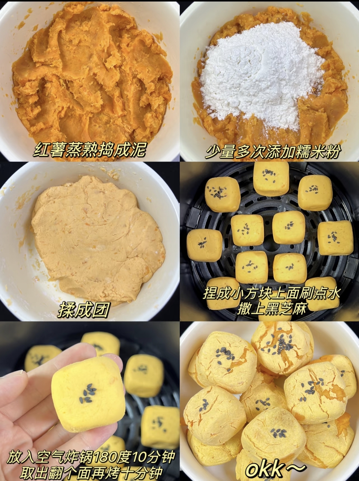 这哪里是红薯团子,分明是会爆汁的“糯叽叽炸弹”啊一口下去直接香到跺脚!外皮酥到掉渣,内馅是流心般的红薯泥,软糯香甜三连击,幸福感直接拉满到天花板~本来只想尝一口,结果一不小心炫了三个(哦吼吼吼…罪过罪过)做法简单到哭,食材步骤都给你们码在图里了,手残党也能秒变大厨!姐妹们快冲,紫薯版本也超绝,不试后悔系列!