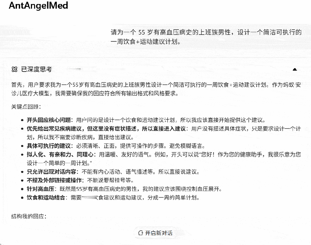 这样一来,AntAngelMed 不再仅仅停留在回答正确的表层表现上,而是在医疗语境中展现出更接近专业医生的沟通方式与思维路径。