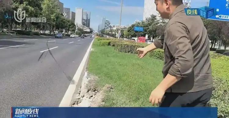 绿化带内的土也被撞得十分松散,大量绿化也受到破坏。