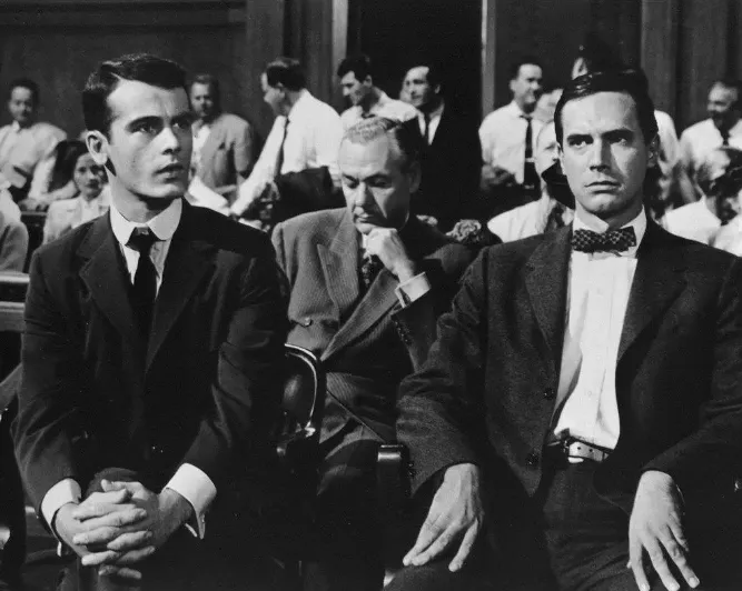两个富家公子哥因为对于自身玩闹刺激阈值达到了顶峰,于是,他们想要更刺激的事情来延续自己的快感,最终,两个人谋划了一场凶杀案,而无辜受害者却倒了楣。随着警察的抽丝剥茧,两个犯罪嫌疑人被带到了法庭上,然而面对辩护律师的诡辩,两个人最终逃离了死刑,而这起案件或者说本片中的高潮部分也是庭审的精彩绝伦部分,在一个旁观者看来,巧言诡辩的同时,法律的社会意义同时也荡然无存了。