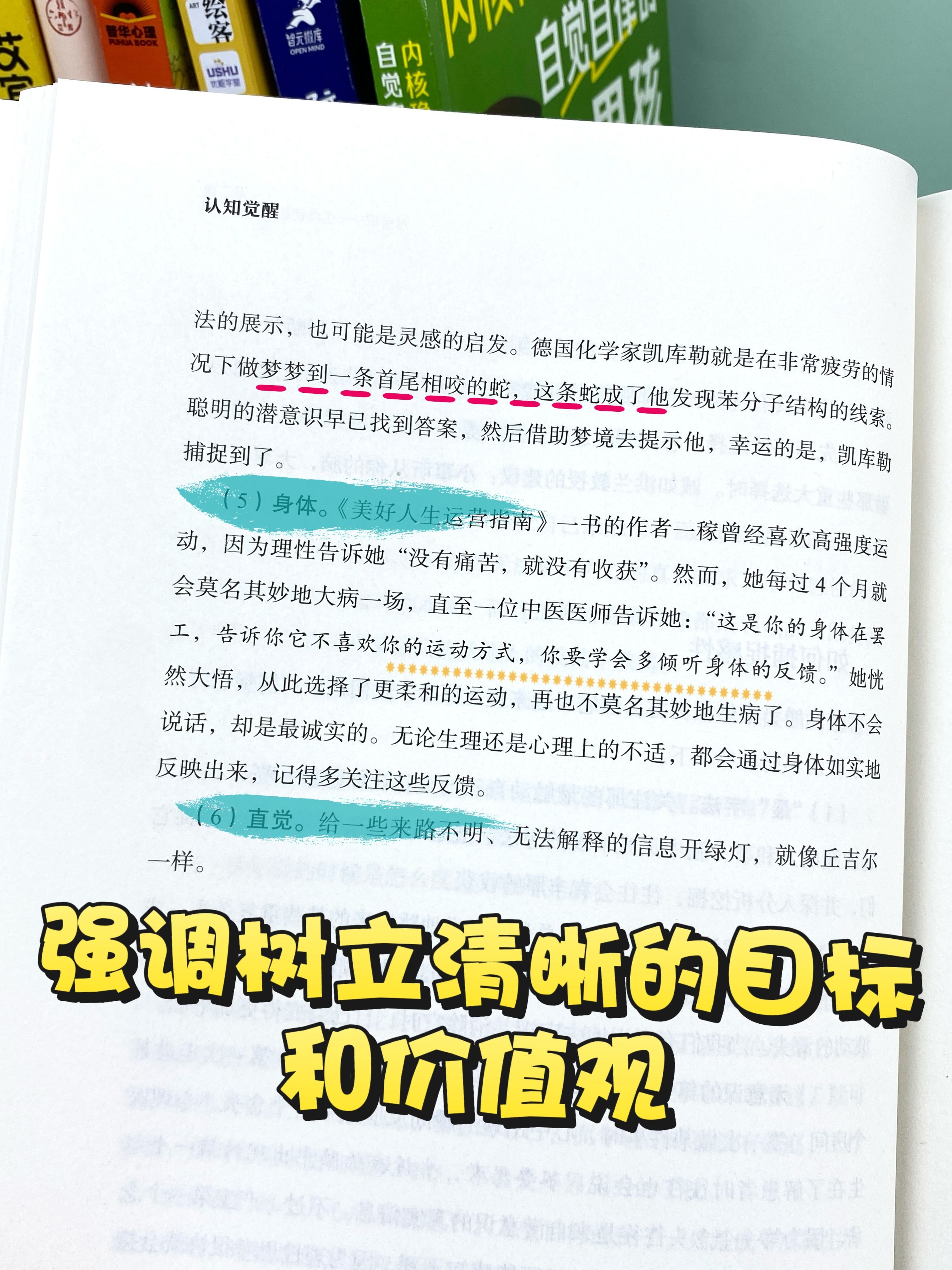 (3)无意识的第一反应。关注自己第一次见到某个人、第一次走进某个房间、第一次做某件事时,心中出现的瞬间反应或第一个念头。心理医生在了解患者时往往也会说:不要思考,告诉我你脑中出现的第一个想法。因为第一个念头往往是来自潜意识的真实信息。不过,产生第一个念头的过程很短,如果不刻意练习可能感知不到,因为理性思考很快就会接替潜意识发挥作用。"