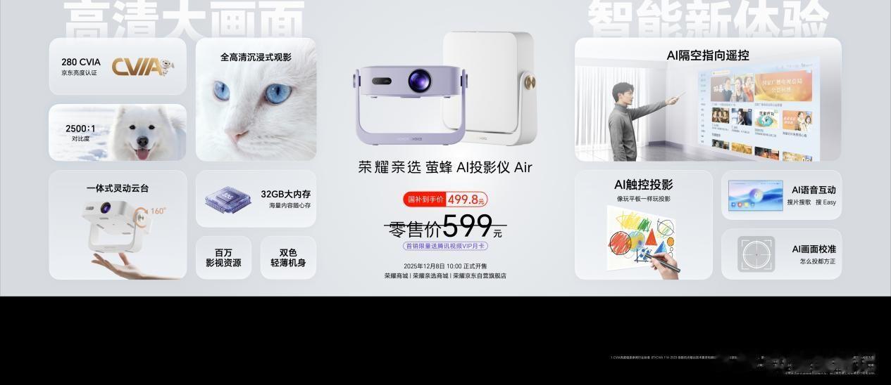 此外,荣耀500系列新品发布会还带来了多款重磅新品。荣耀500系列带来超级标准版和超级Pro版,以2亿人像全能实况、骁龙8系旗舰芯片、8000mAh青海湖大电池超长续航、超美水晶小直屏最强质感,重塑档位标准,为用户带来一步到位的用机体验。荣耀手表X5作为荣耀手表迄今最大屏、最窄黑边、最轻薄的方表,是档位中唯一同时配备游泳级防水、独立GPS的智能手表;荣耀Earbuds S具备深度降噪、空间音频,拥有超长续航;荣耀亲选萤蜂Al投影仪Air获得京东亮度认证,投影表现更亮更清晰,搭载创新AI 智能操控,带来全新操控交互体验,点得准,更玩得爽!