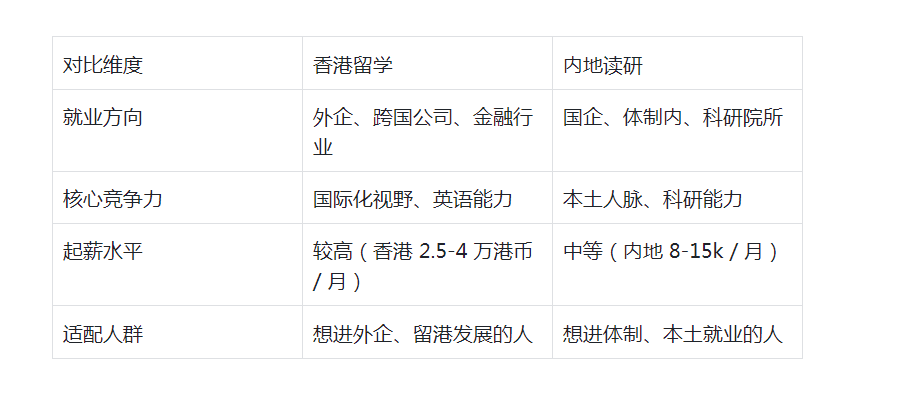 其实不管选哪条路,最终的就业竞争力都取决于 “个人能力”—— 香港留学能给你更好的平台和机会,内地读研能给你更稳的积累和沉淀,只要你足够努力,都能实现自己的目标!