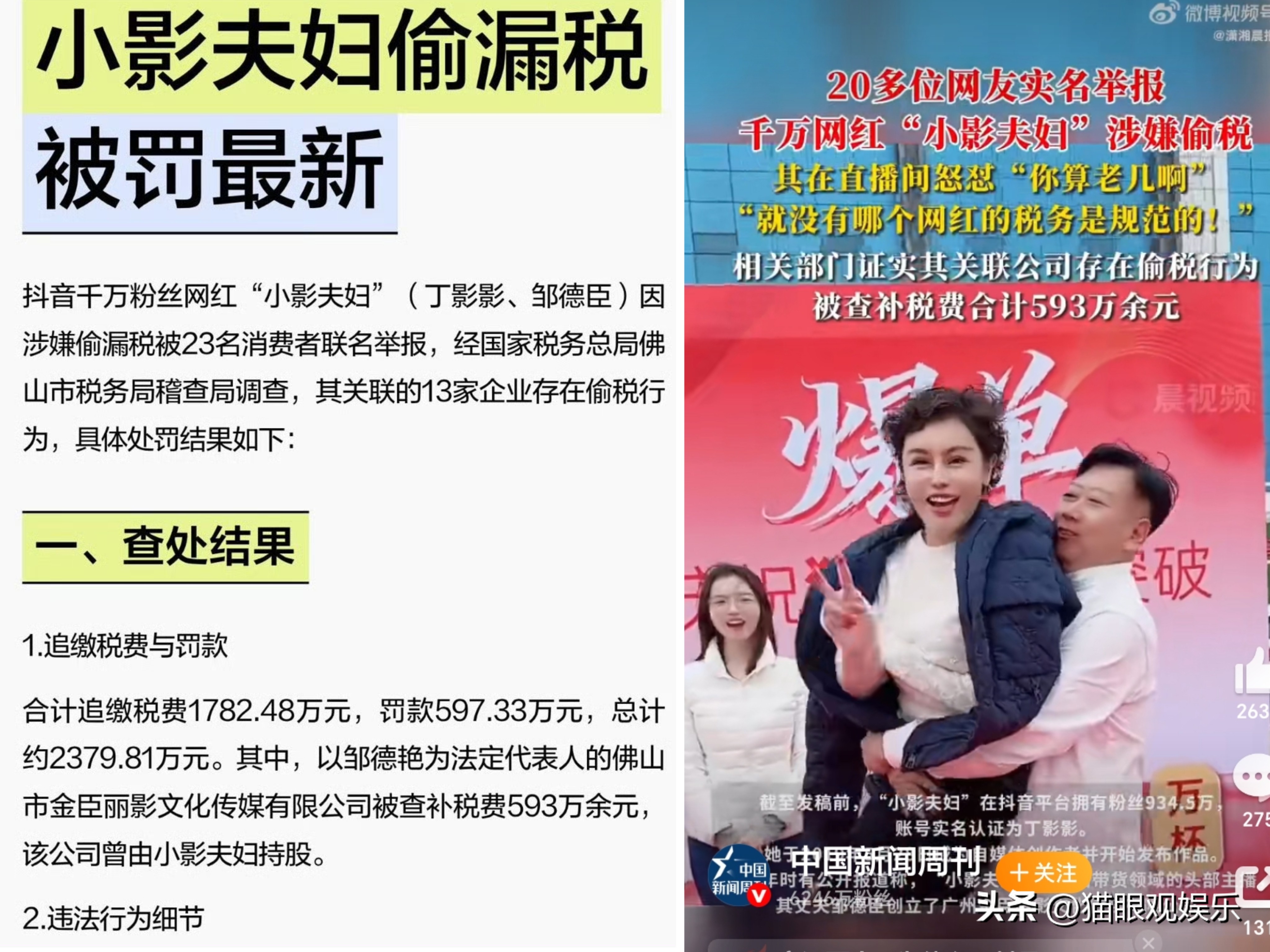 当“网红”与“偷税漏税”挂钩,流量光环便成了遮羞违法行径的幌子。近日,网红小影夫妇偷税漏税案尘埃落定,13家关联企业被追缴税费1782.48万元、罚款597.33万元,主账号关联公司单家追缴额就达593万元,此前“单户偷逃超900万元”虽系误读,却难掩其违法事实的恶劣。