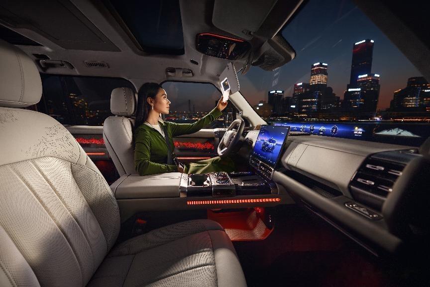 车内设计强调豪华感与数字化体验。纵横灵感座舱以“多屏联动”为核心,配备35.4英寸全景智慧屏、15.6英寸中控屏、17.3英寸后排娱乐屏及空调控制屏,整车屏幕总面积超过77英寸[[8]][[9]]。高端配置如Lexicon音响系统、多区域香氛、氧舱健康系统及支持通风/加热/按摩的零重力座椅,进一步强化了驾乘舒适性。