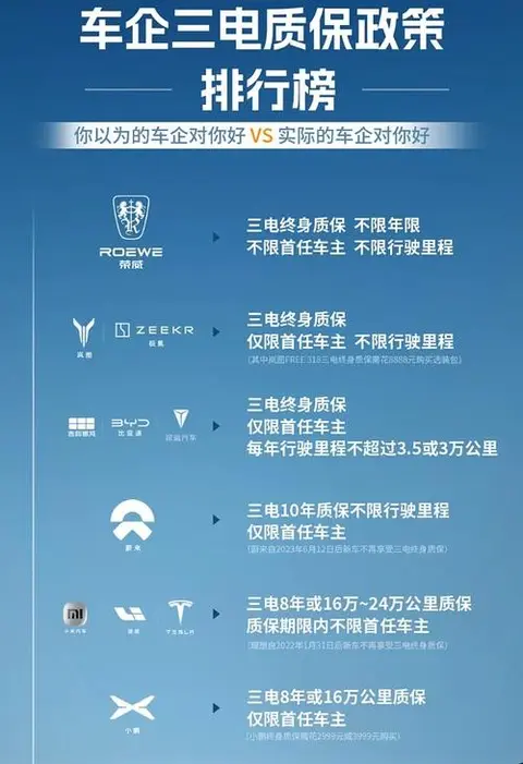 在新能源汽车市场,质保政策早已成为消费者购车决策的重要考量因素,尤其是三电系统的质保承诺,直接关系到车主长期用车的安心程度。