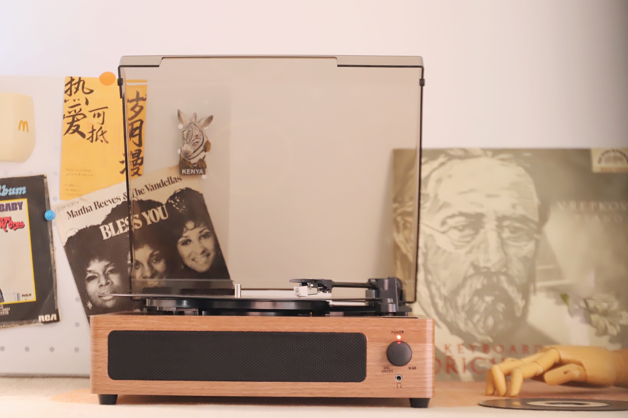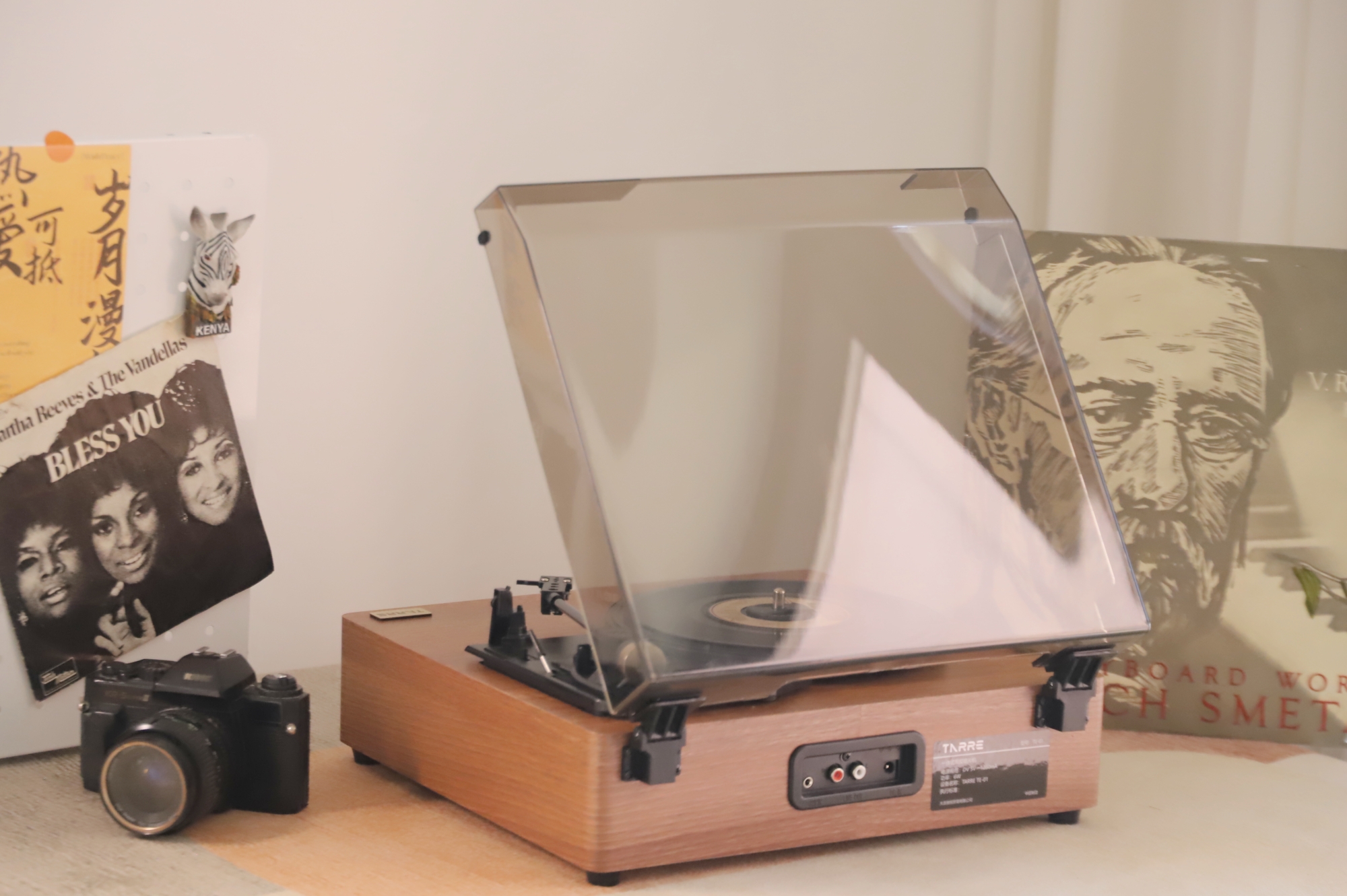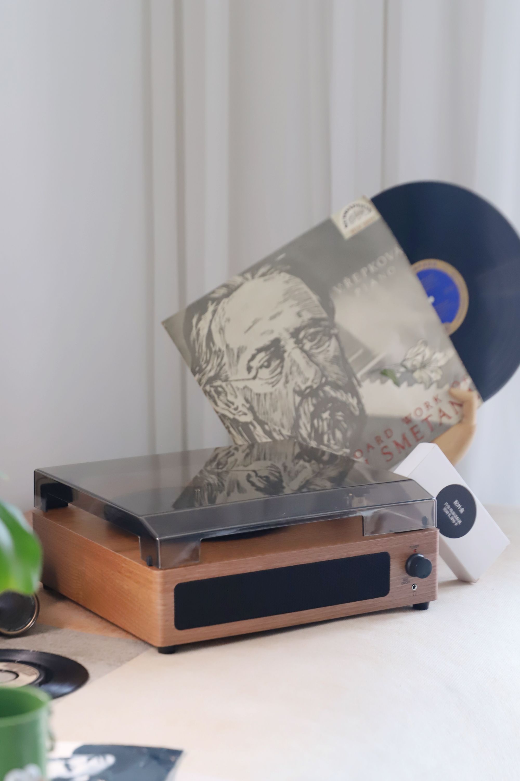 防尘盖四周都有开孔,所以合盖也能播放,我用它播放了多张唱片,甚至有些唱片因为年久已经有些划痕的情况下,也能很好地解析和播放。无论是悠扬纯乐曲,还是爵士和人声,都能清晰、稳定的演绎出来,相对听感来说,更注重均衡之感,不会有沉闷的低频下潜,完全能满足日常听音需求。