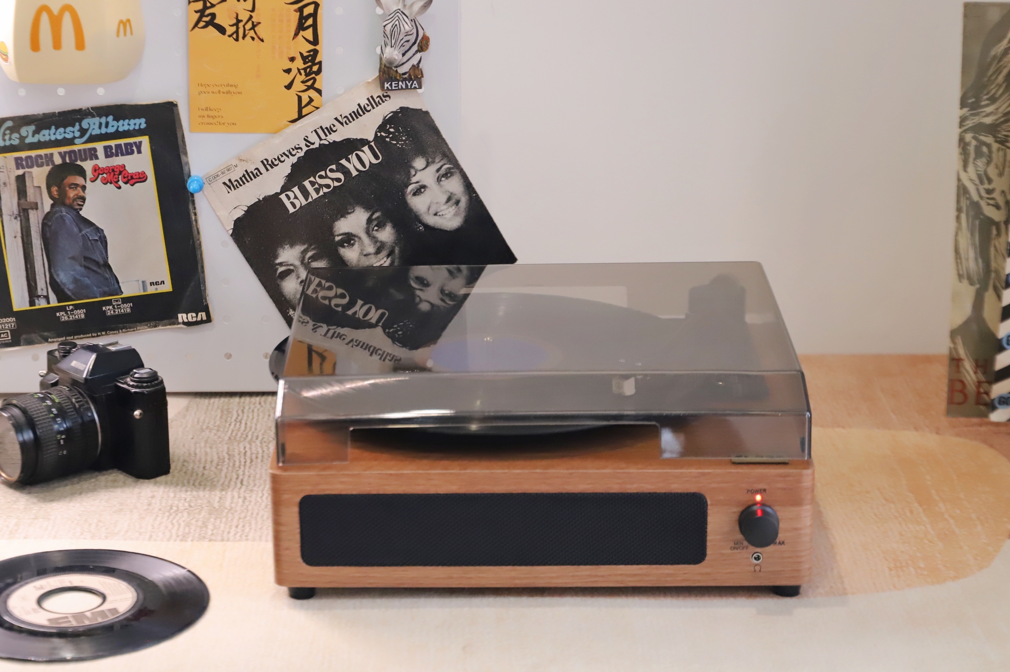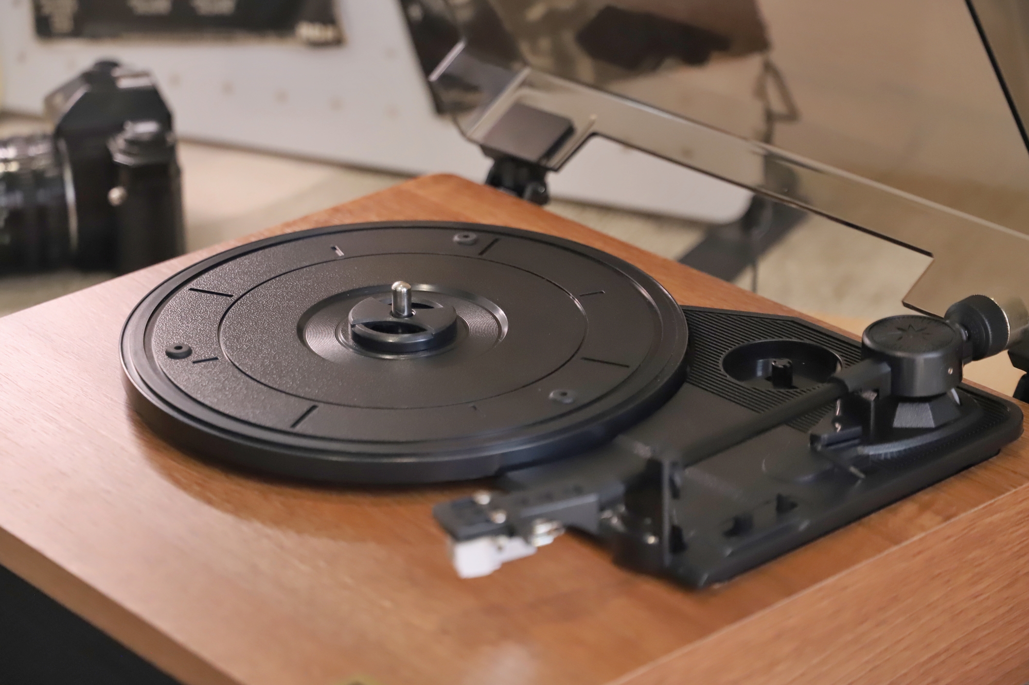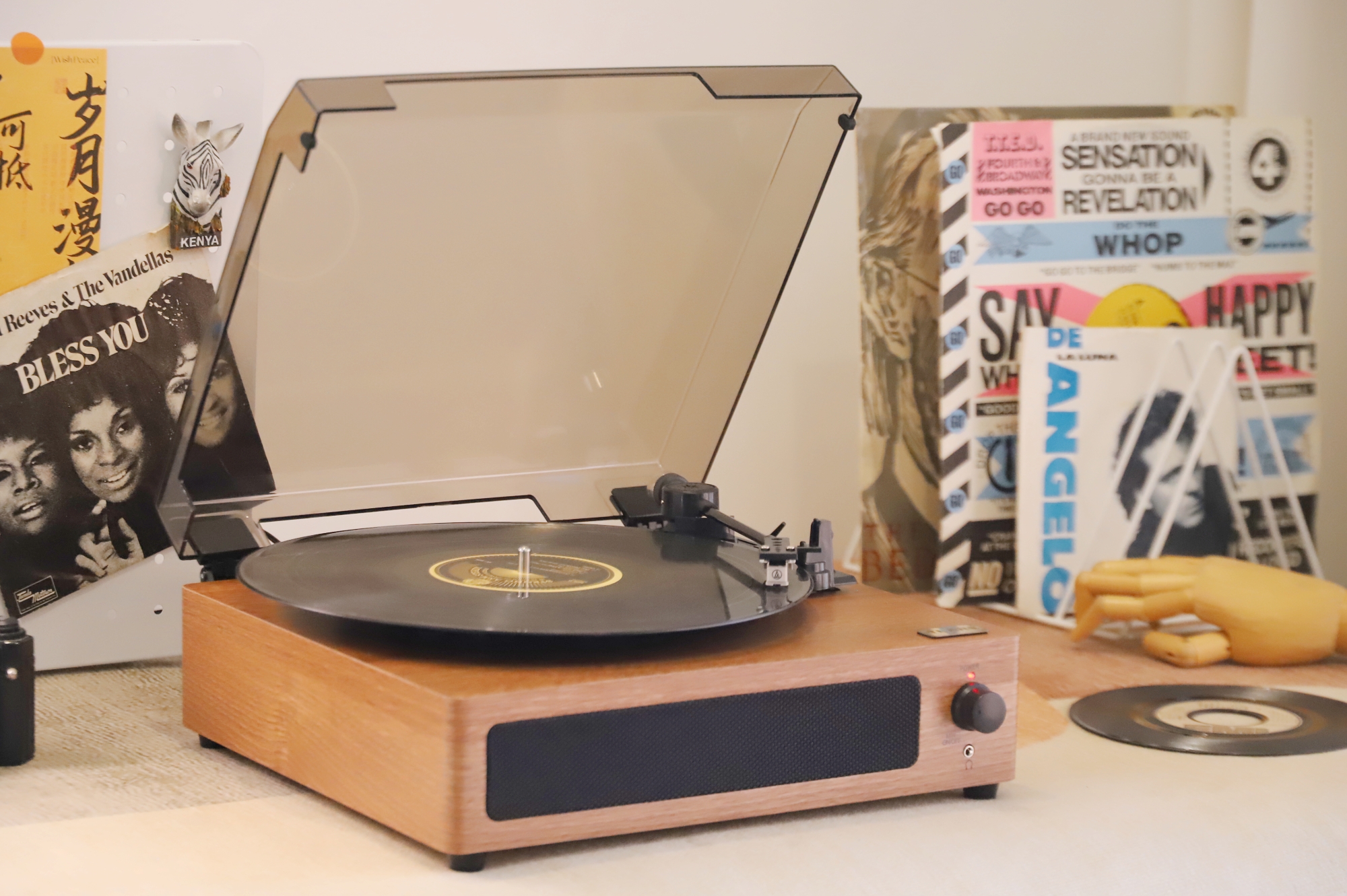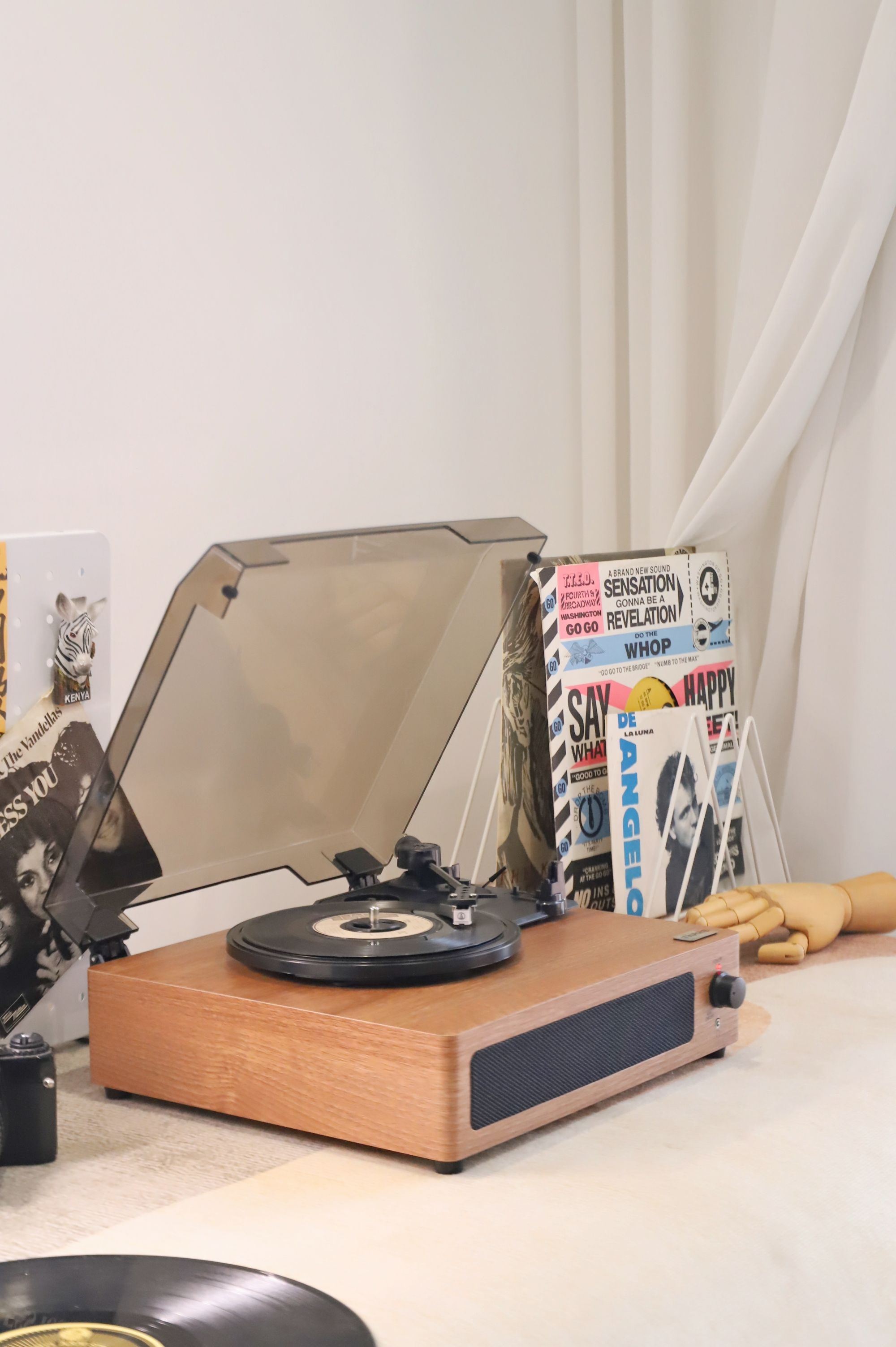 防尘盖四周都有开孔,所以合盖也能播放,我用它播放了多张唱片,甚至有些唱片因为年久已经有些划痕的情况下,也能很好地解析和播放。无论是悠扬纯乐曲,还是爵士和人声,都能清晰、稳定的演绎出来,相对听感来说,更注重均衡之感,不会有沉闷的低频下潜,完全能满足日常听音需求。