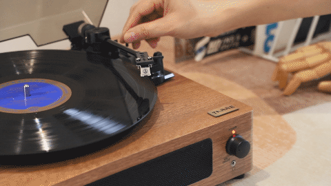 唱臂架和锁扣合二为一,将唱臂放置到合适的位置,放下升降杆后,唱针缓缓下降,最终在唱片上落下的那一刻开始,悠扬的乐曲随即响起。另外唱片机也支持转速调节,它可以播放7、10/12寸多款黑胶唱片,对于追求音质细节的用户和唱片收藏者来说再合适不过。