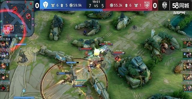 第三局,MTG开局反蓝成功,一分钟的河道之灵也同样拿下。开局顺利的MTG同样在时间的流逝中迷失自己,11分44秒TES破掉MTG中路外塔后,MTG就一蹶不振,在12分的团战中被TES打出零换三,TES公孙离拿到二连击破,TES一鼓作气中路直推,在12分40秒破掉MTG水晶拿下比赛胜利。