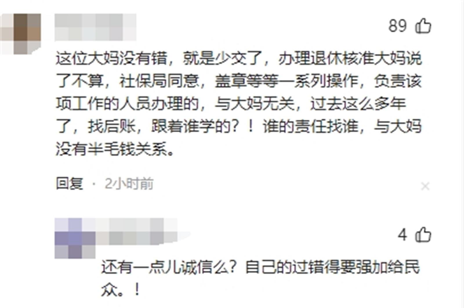 胡大姐也说了,是补交了13个月的费用的,换句不好听的话哈,就算没补交,那咋批准的允许退休呢?