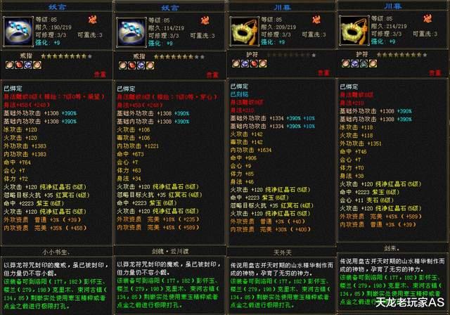 戒指护符有3件都是冰火双属性小极品八星,也基本带命中、会心、身法!