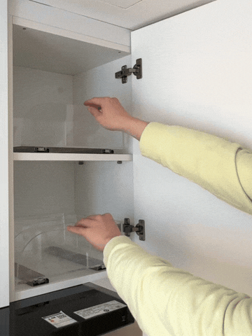台面乱七八糟的小电器可以集中收纳在高柜内,抽拉层板每一格都可以拉出来使用。