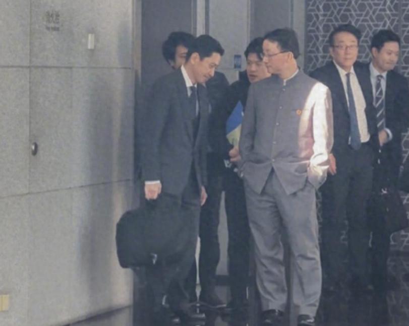 但是,从官方披露的照片来看,他是眉头紧皱的来,又眉头紧皱的走。而且在面对中方代表时,金井正彰可以说是全程没敢挺胸抬头。