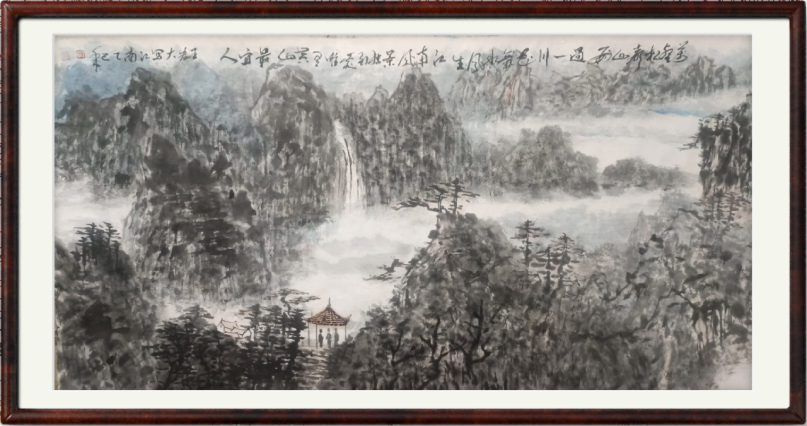 中国山水画是人与自然的交流,是人对自我的物化。古人云:“仁者爱山;智者乐水”。清代山水大师石涛说:“山乃既我,我乃山也。自然是我师。”石涛搜尺奇峰打草稿,读万卷书,行万里路,外师造化,中得心源。在江宁的将军山北面,有一座唐代古寺“龙泉寺”,三山笼一寺,泉水溪流,古树繁茂,郁郁葱葱,确有“明月松间照,清泉石上流”的宋人诗意。雾笼塔影烟笼寺,暮听钟声夜听泉;野亭尽揽山中趣,幽青能观世外天。中国山水画将山水与人的心性有机地融合在一起,充分体现人与山水的“天人合一”。