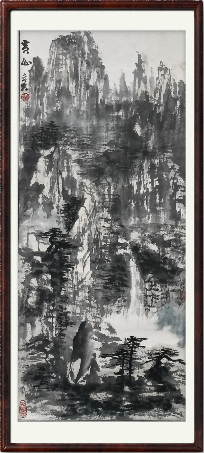 中国画的笔墨;是作者用来表达艺术吾言的一种技法形式,笔墨是作品的基石;笔墨是作品的精神风骨。书画家的长期磨砺是为了提高自己的笔墨修养。山水画大师黄宾虹的五笔七墨是最科学的技法和哲学理念。“平,圆,留,重,变”;及“浓,淡,破,积,焦,泼,宿”。体现了笔含情、墨生韵、而骨法用笔以书入画方可入境。黄宾虹的画,禅意神悦、厚重华滋,耐人寻味。黄宾虹最大的成就是将中国山水画的笔墨推向艺术的时代高峰。加深了艺术的哲学内函。黄宾虹是廿世纪中国山水画之首,是开宗立派的山水画大师。在他的山水画里集中写到:“太极图是书画秘诀”。太极图是阴阳八卦,太极图里面有阴阳对立与互补,有阴阳咬合与互渗,有静止,有运动,有一波三折而造成的哲学原理的黑白形象示意图,在今天看来,它仍是一把开启人们智慧之窗的神奇钥匙。
