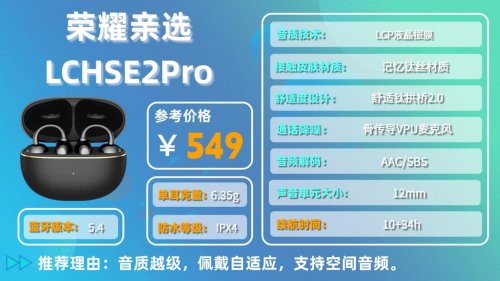 8. 荣 耀亲 选LCH SE2 Pro夹耳式耳机