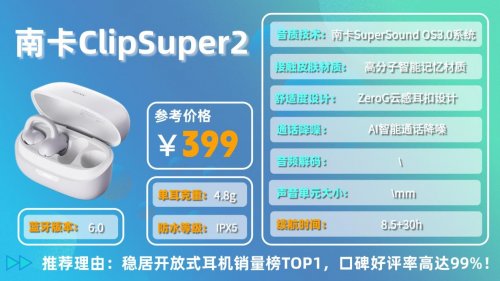 1. 南卡ClipSuper2夹耳式耳机