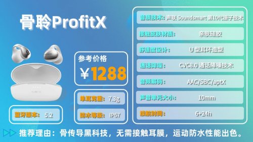 推荐理由:骨传导黑科技,无需接触耳膜,运动防水性能出色。