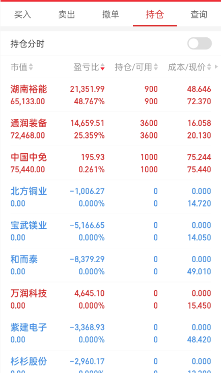 持有:湖南裕能,通润装备,中国中免,森源电气,上海建工,万马股份