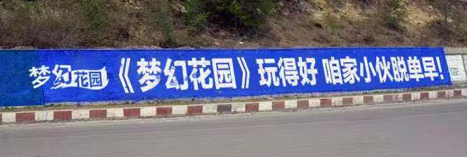 可以看到土味口号还是那个熟悉的味道,但是广告产品早已经突变,像《梦幻花园》这样我们平时玩的游戏都已经在农村做起广告。