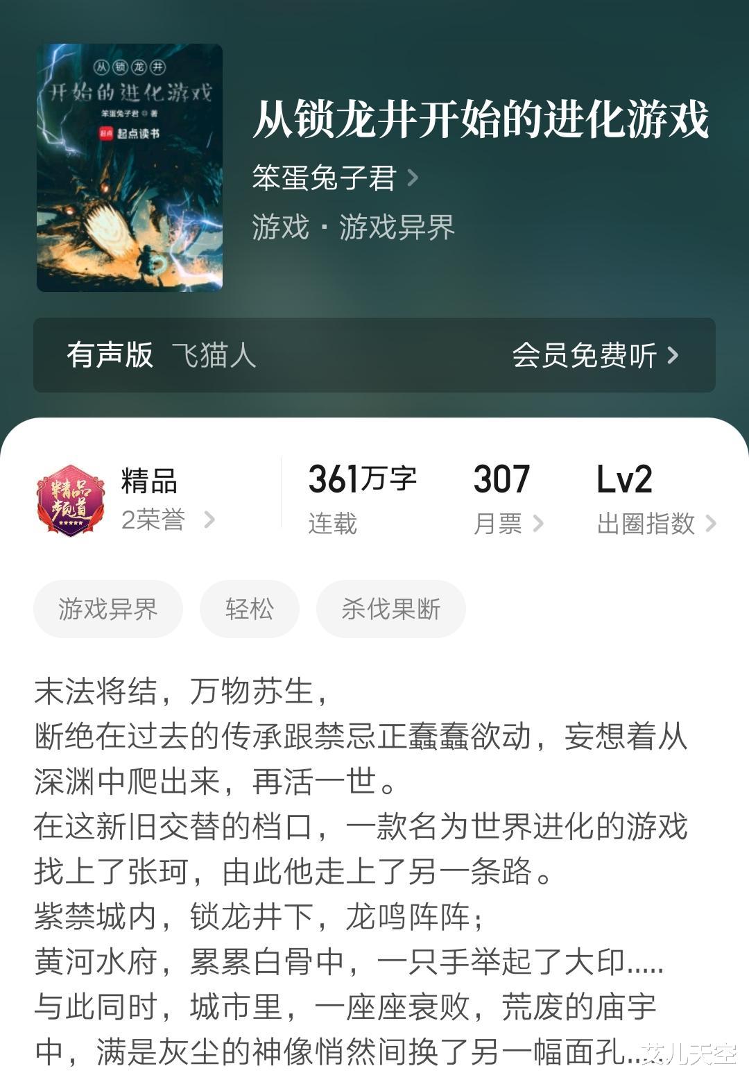 小说前五十万字是放飞自我的神豪爽文,后面因为转换风格去写主角的成长,反而不那么爽了,也因为风格割裂,以至于成绩有所下滑,从巅峰期的一万五下降到了完结时的一万一。